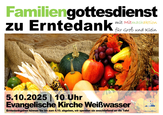 Die Kirchengemeinden Bad Muskau-Gablenz, Krauschwitz, Weißwasser und Schleife laden am 21. September, um 10 Uhr zum