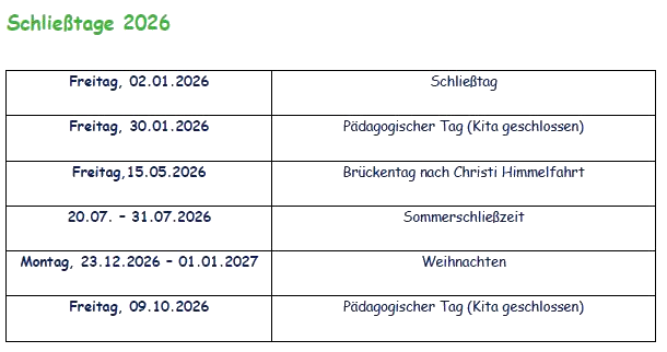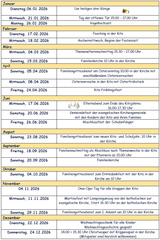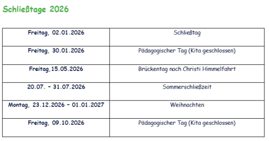 Kita-Termine und Schließtage 2026